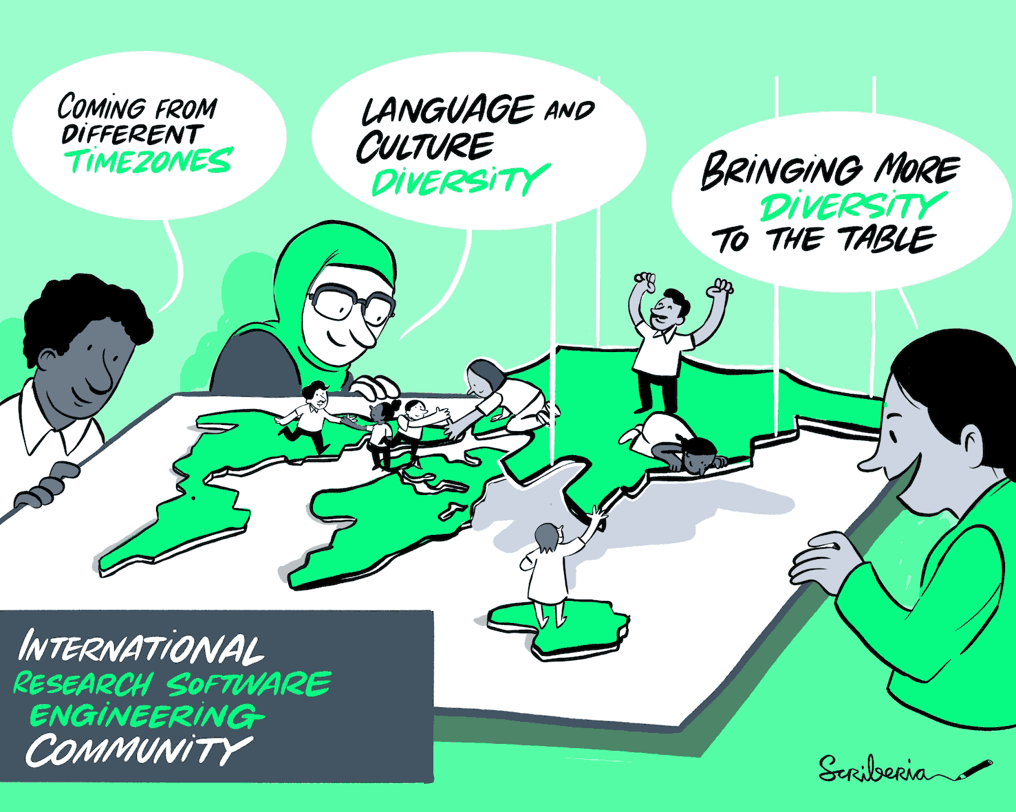 Fig. 101 RSE Asia Community joins the International RSE Network. This image was created by Scriberia for The Turing Way community and is used under a CC-BY 4.0 licence for reuse. Zenodo. DOI 10.5281/zenodo.3332807).#